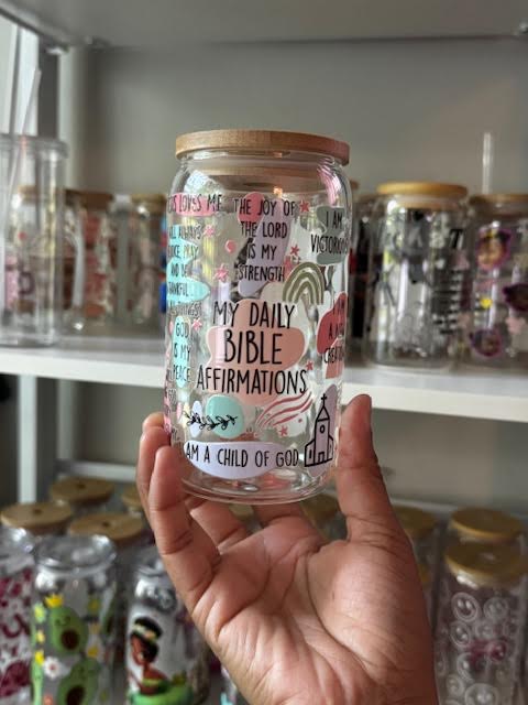 Bible Affirmation Libbey Glass Cup with Lid and Straw – Christian Gift – Scripture Glass – Inspirational Tumbler for Women