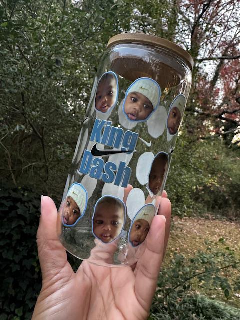 BIG HEAD Libbey Glass Can, Custom Design Cup, Custom Cup, Baby Head Cup